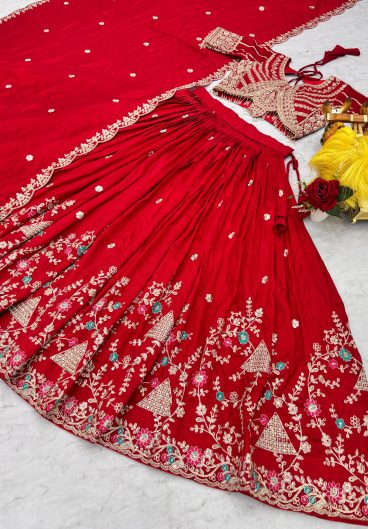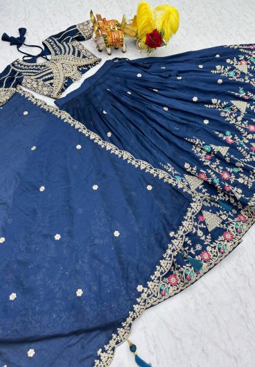 Pure Vichitra with Embroidery cording Sequence Work with thread work Lehenga Choli