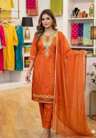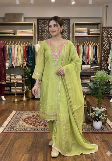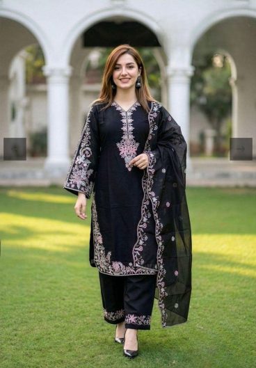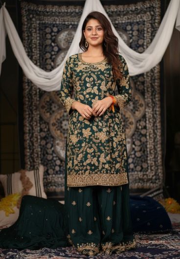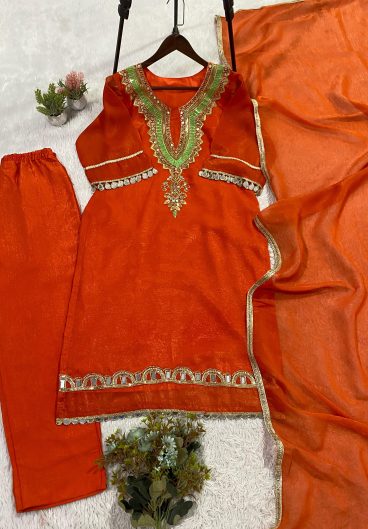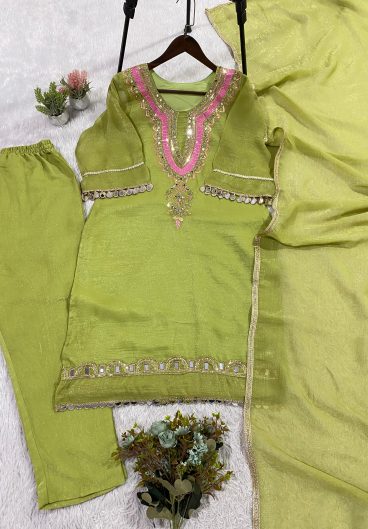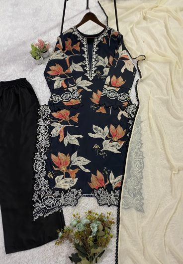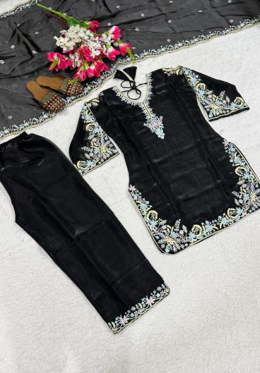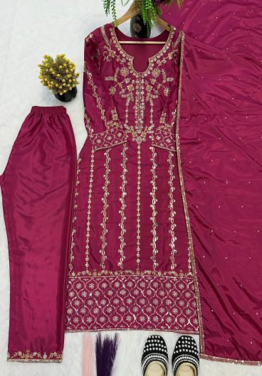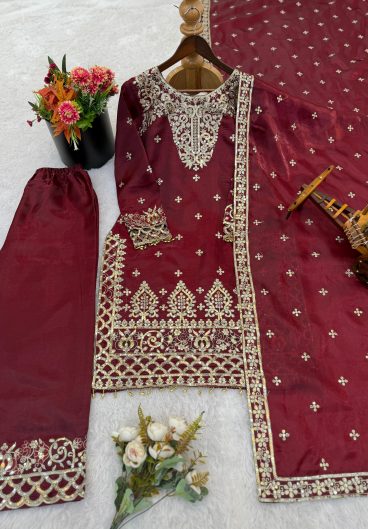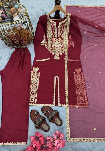 New Designer GMY SILK With Heavy Embroidery Sequence Work Top-Bottom And Dupatta Set