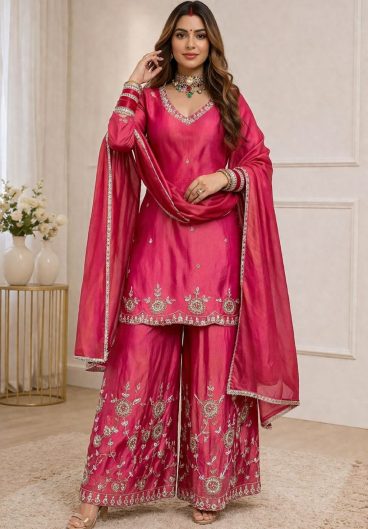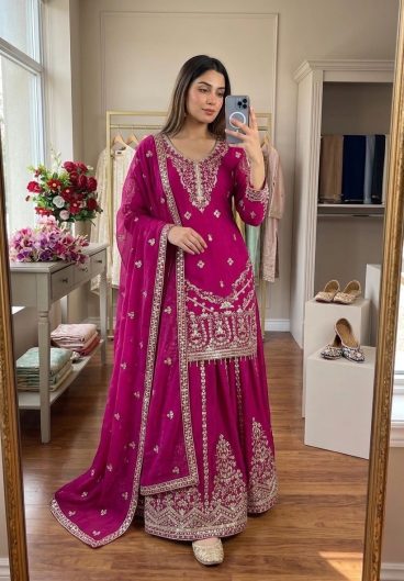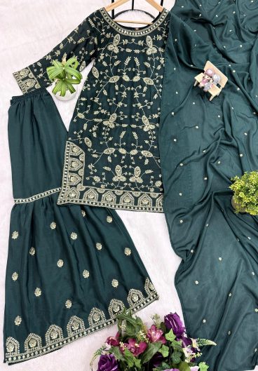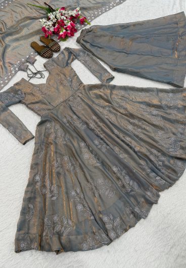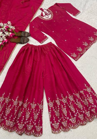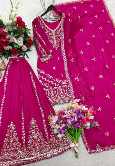 Heavy Simmer Silk With 5mm Sequence Embroidery Work Top Plazzo And Dupatta Set