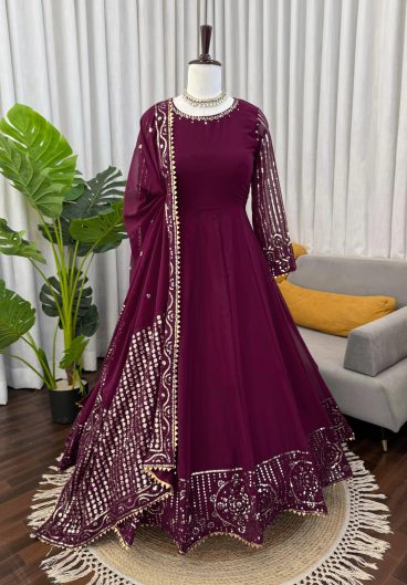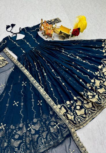 New Festival Fox Georgette with Heavy sequence Embroidery Work Long Gown & Dupatta