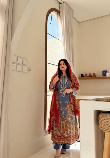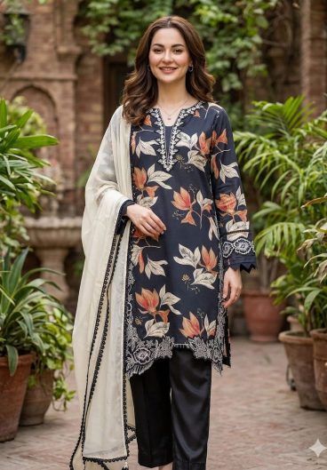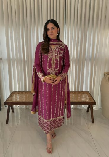 HANIA AMIR INSPIRED PAKISTANI SUIT WITH EMBROIDERED TOP PLAZZO AND DUPATTA