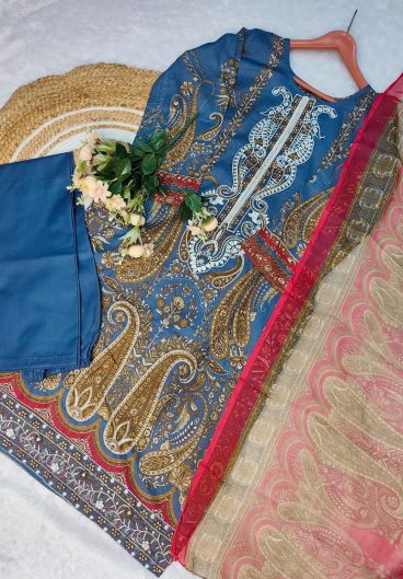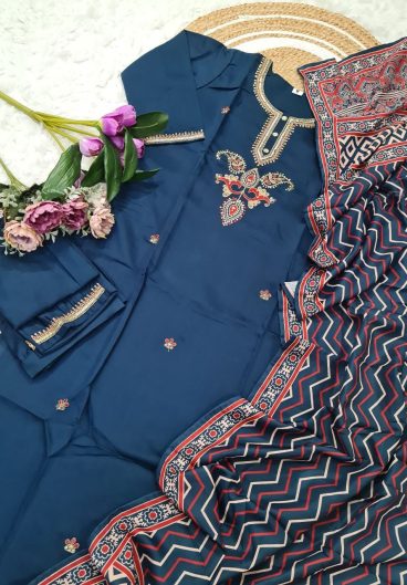 DESIRABLE FANCY LONG SUITS EMBROIDERY WORK TOP AND PENT WITH DUPATTA