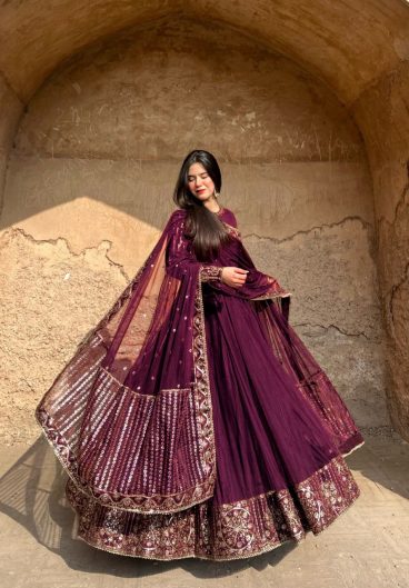 New Designer Heavy Vichitra Silk With 5mm Sequence And Embroidery Work Anarkali Suit In New Fancy Style