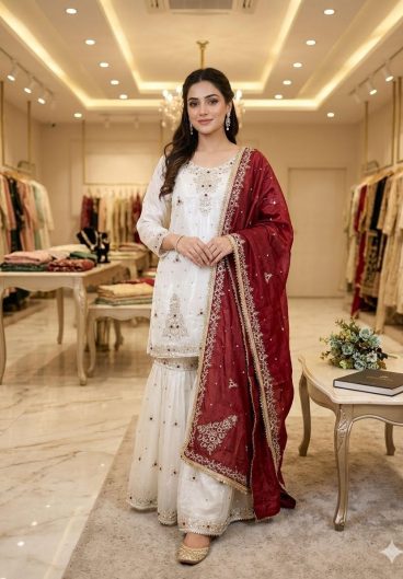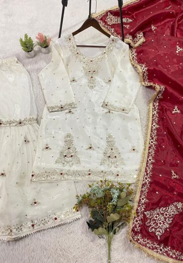 WEDDING SEASON WEAR SEQUENCE EMBROIDERED TOP SARARA WITH DUPATTA