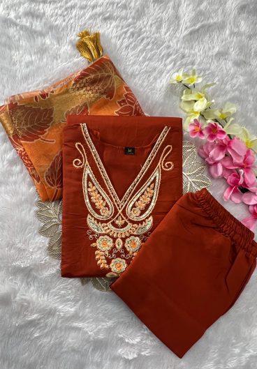 Beautiful Suit Sets in Pure Cotton 60 60 Suit Set Top pent with dupatta with Fully Handwork Nack
