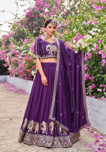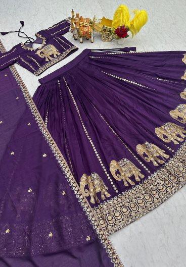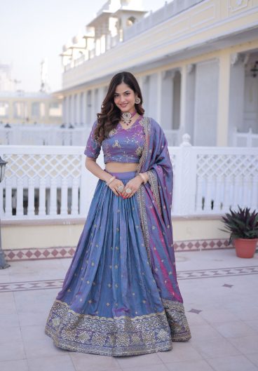 Pure Vichitra with Embroidery Sequence Work with thread work Beautiful Lehenga Choli