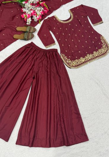 Heavy Natural Crep Silk Material With 5mm sequence Embroidery Work New Designer Party Wear Look Top Plazzo & Dupatta