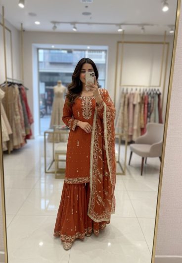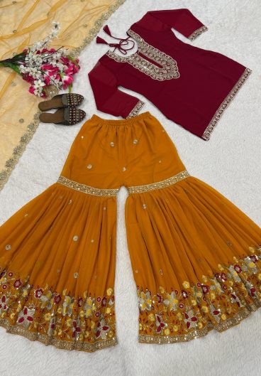 Pure Fox Georgette With Embroidery 5mm Sequences Work With Ravet Moti Top Sarara & dupatta