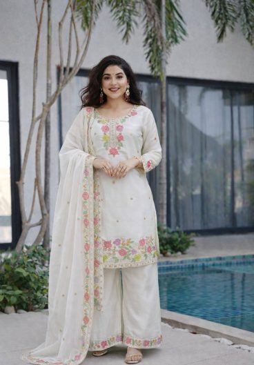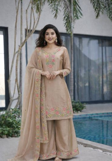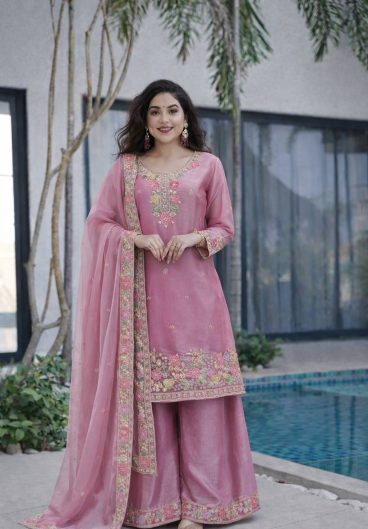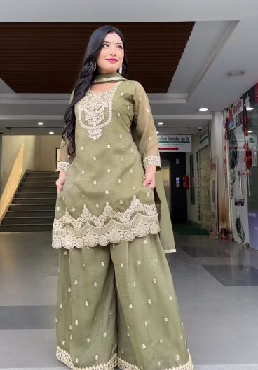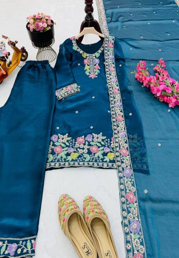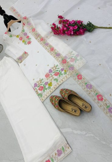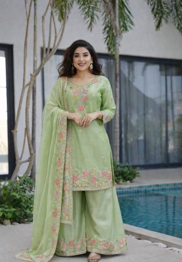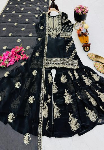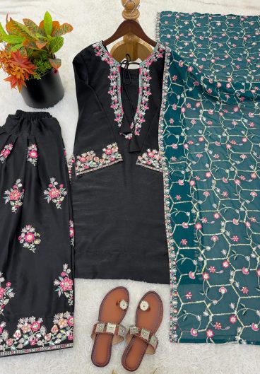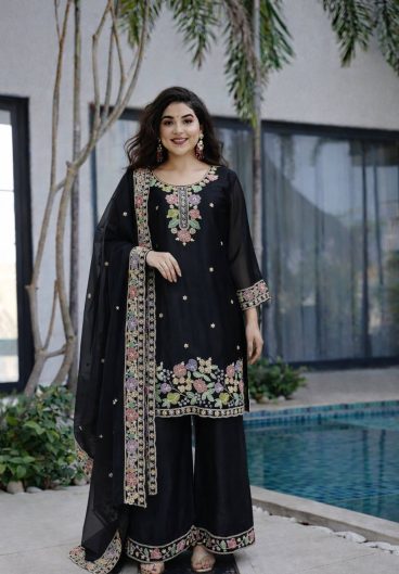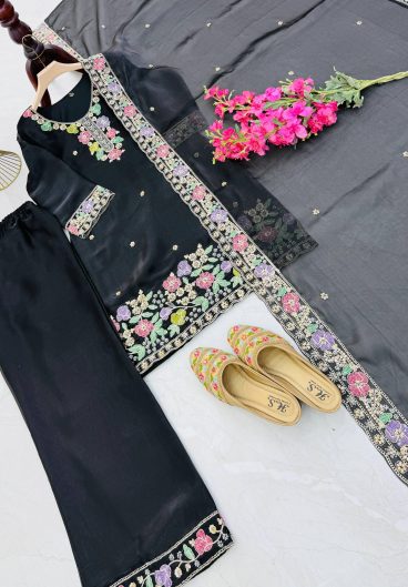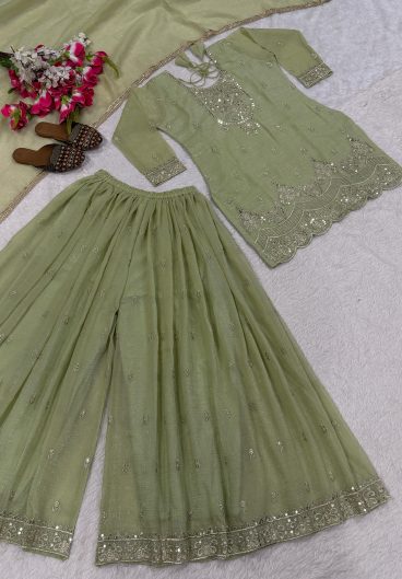 New Designer Party JimmyCho with Sequence Embroidery Work Top Pallazo & Dupatta Set