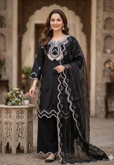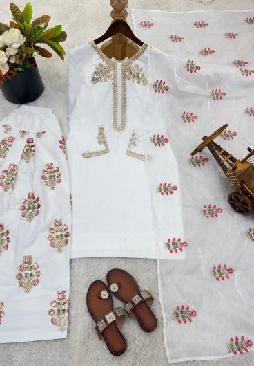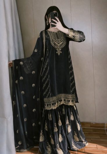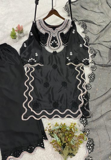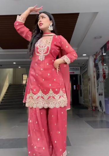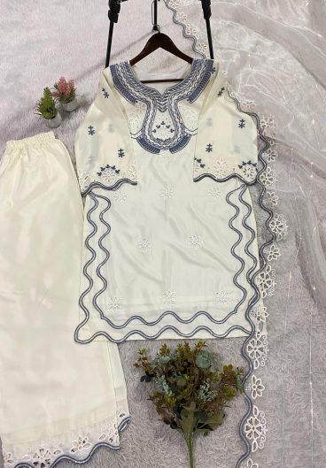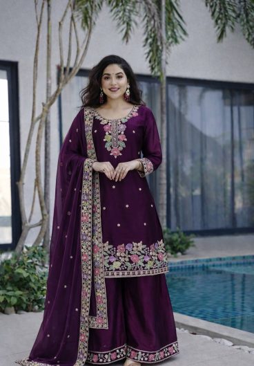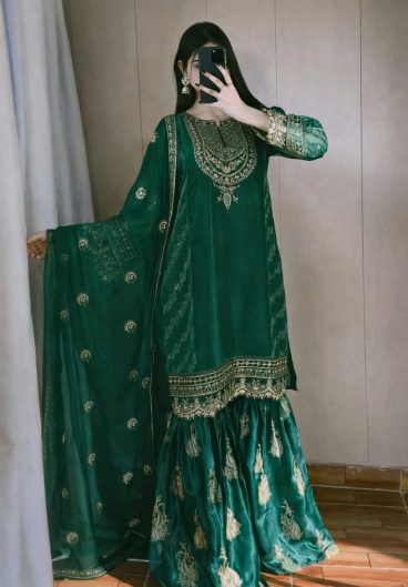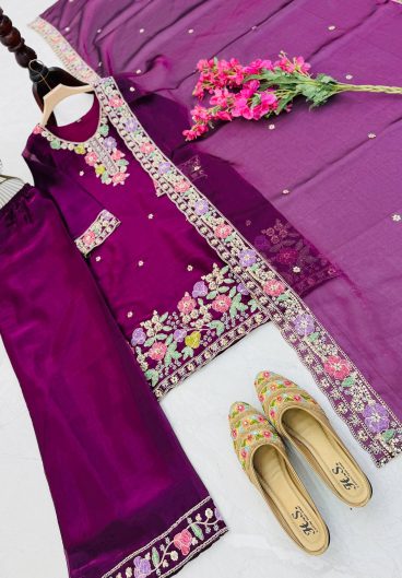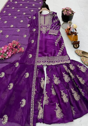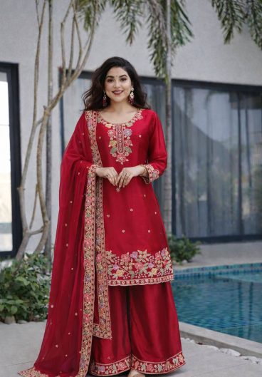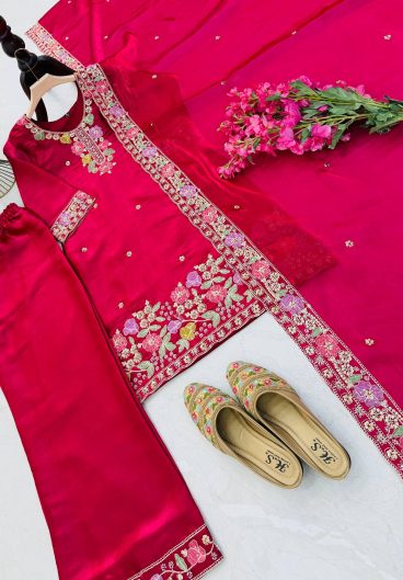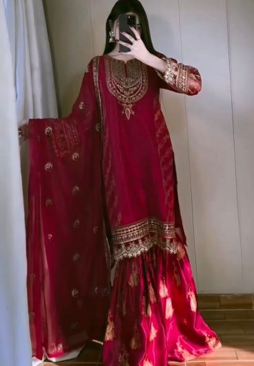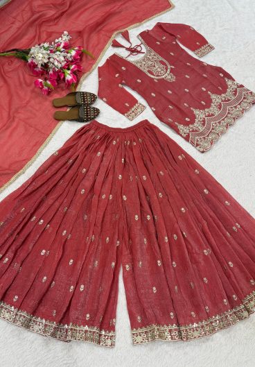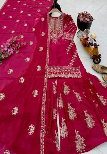 New gmy-Chu Silk Top-Sarara and Dupatta Set Fully Stitched Ready To Wear