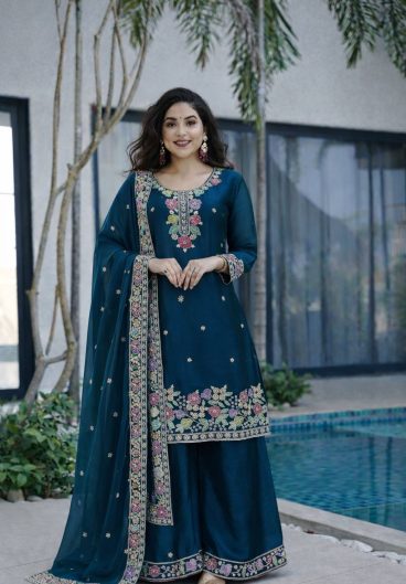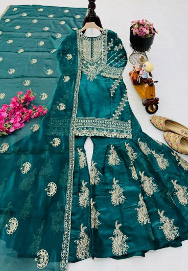 New Designer Party Wear Look Heavy Roman Silk With Embroidery Work Top With Farshi Salwar