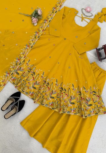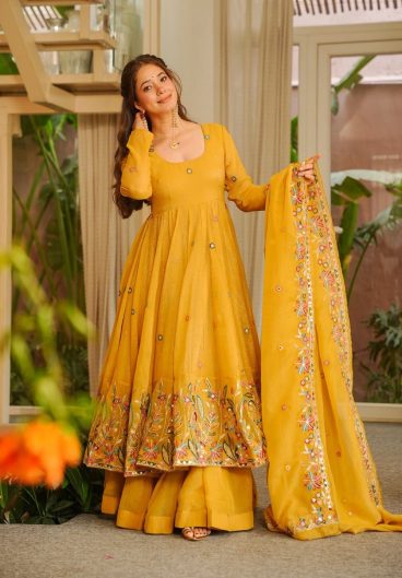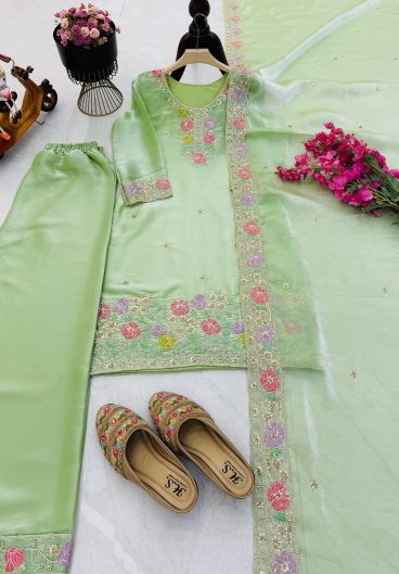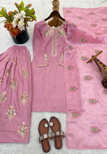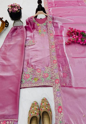Beautiful Fendy Silk with Embroidery Sequence Work with real Mirror work Salwar Kameez
