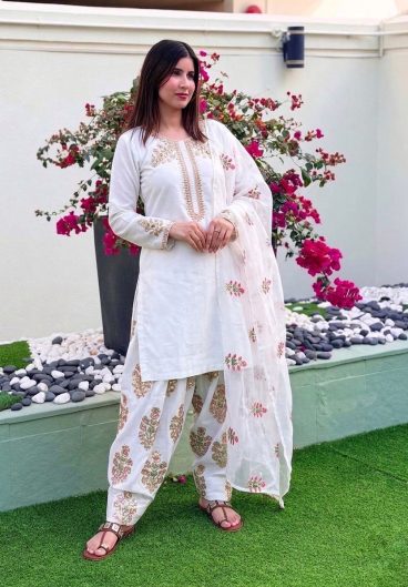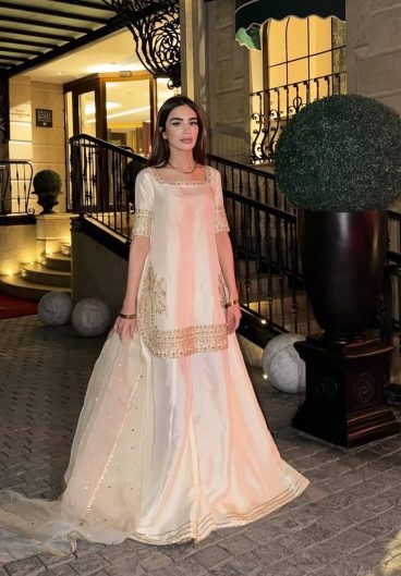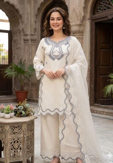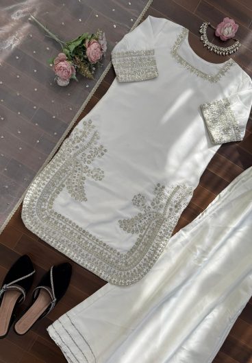 HANIA AMIR INSPIRED PAKISTANI SUIT WITH SEQUENCE EMBROIDERED CUT WORKED TOP PLAZZO AND DUPATTA