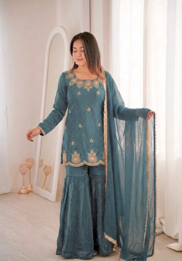 New Designer Party Wear Look Top Sharara Plazzo and Dupatta Set