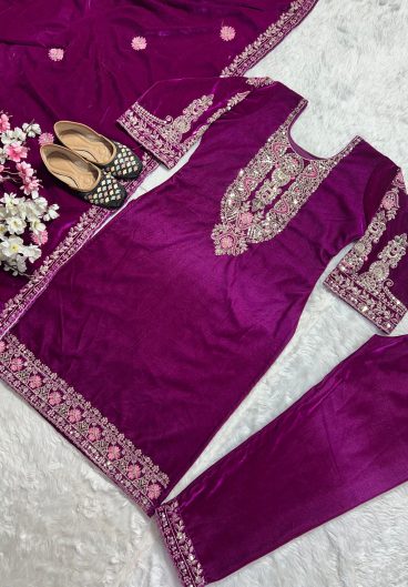 Pure Heavy Chinnon Silk With Heavy Embroidery Coding Sequence Work With Full Embroidery Sleeve Suit