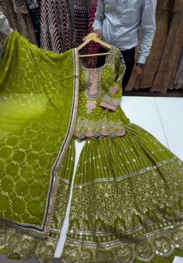 Beautiful Designe Ready Made Fancy Embroidery And Sequins Work Top – Plazzo With Dupatta