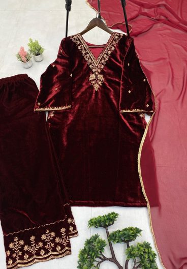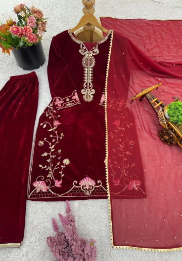 New Designer Party Wear Look Velvet Top-Dupatta and Fully Stiched Bottom