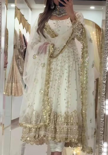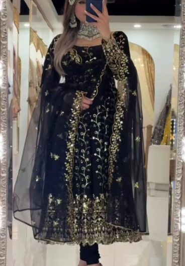 Heavy Faux Georgette With Heavy 3mm Embroidery Sequence Work With Full Sleeve With Latkan Dori Salwar Kameez