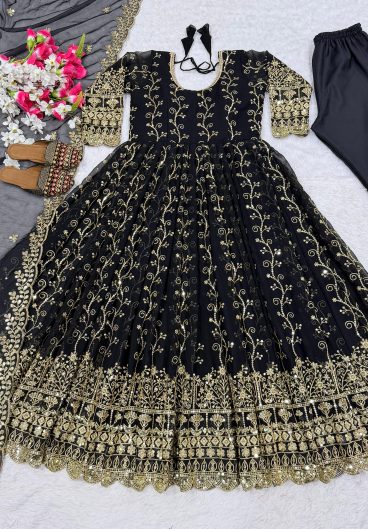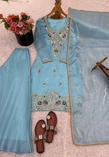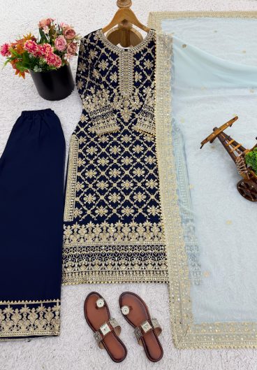 New Designer Pure Heavy Faux Georgette With Heavy Embroidery Sequence Work Top-Bottom And Dupatta Set