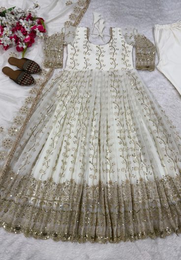Fox Georgette with Heavy 3mm sequence Thread Work Gown Dupatta Set