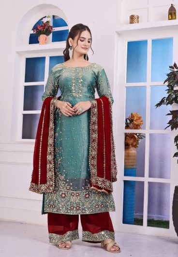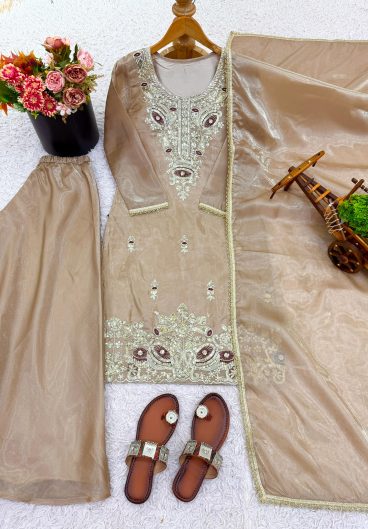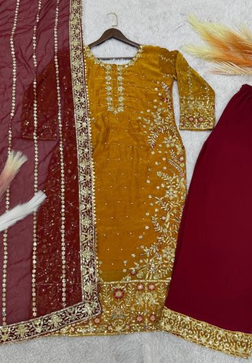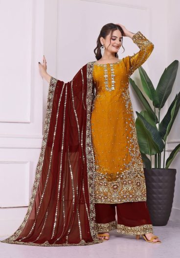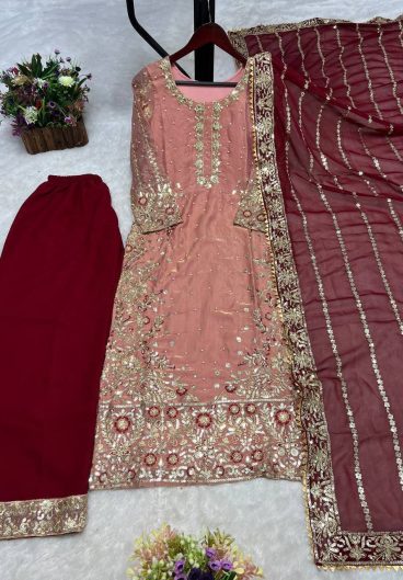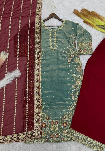 NEW FANCY DESIGN HEAVY EMBROIDERY AND SEQUENCE WORK TOP – PLAZZO WITH DUPATTA