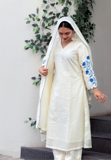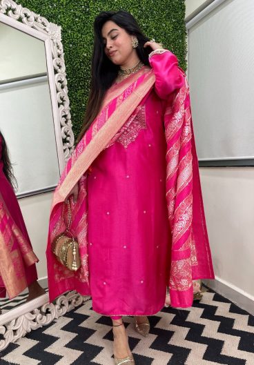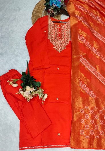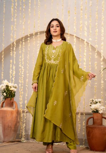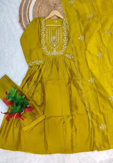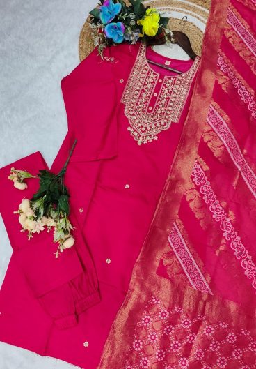 Heavy Chanderi Silk Neck with Embroidery Work With Dupatta Chanderi Silk With Embroidery