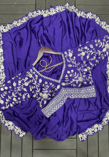 DESIGNER WEAR LAHENGA SAREE WITH LONG BLOUSE AND HEAVY EMBROIDERY WORK