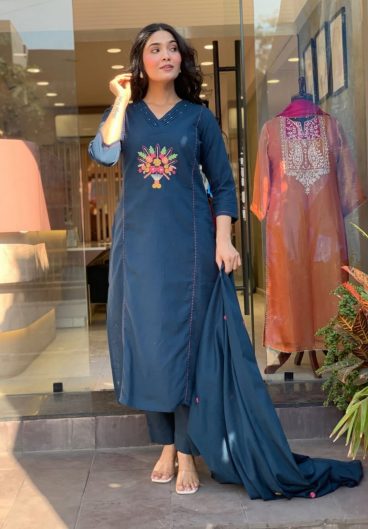 Heavy Rayon With Embroidery KURTI PALAZZO WITH DUPPATA