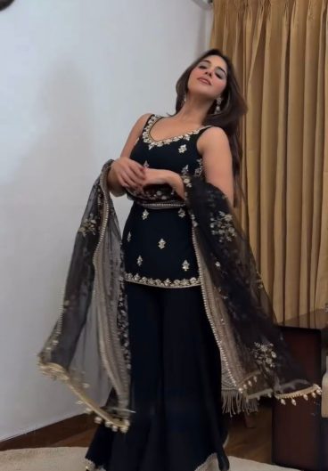 HANIA AMIR INSPIRED SEQUENCE EMBROIDERY WORKED TOP FARSI SALWAAR WITH DUPATTA