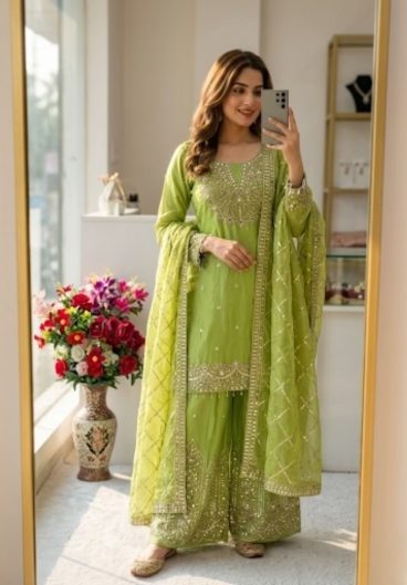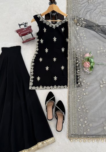 NEW TRENDING 3 PIECE FANCY KURTI WITH PLAZZO AND BEAUTIFUL DUPATTA