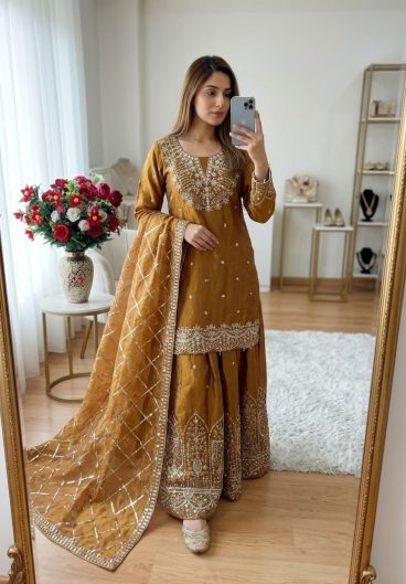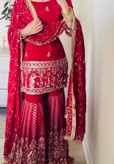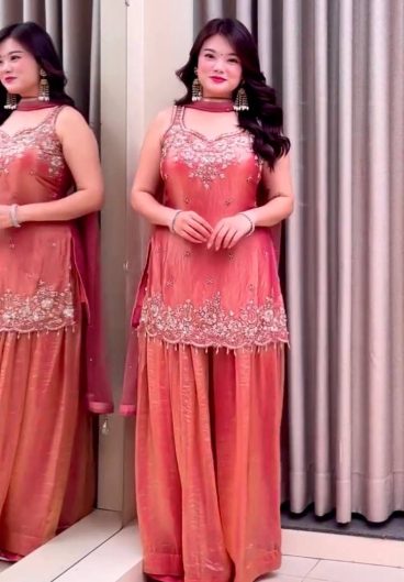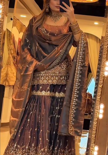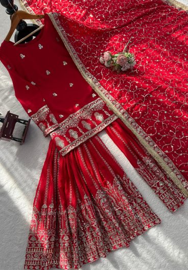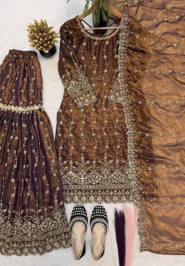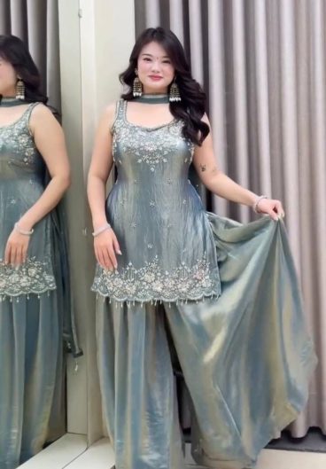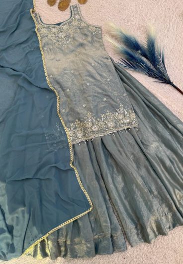 New Designer Party Wear Look Heavy Fandy Crushi Silk Top Sharara Plazzo and Dupatta