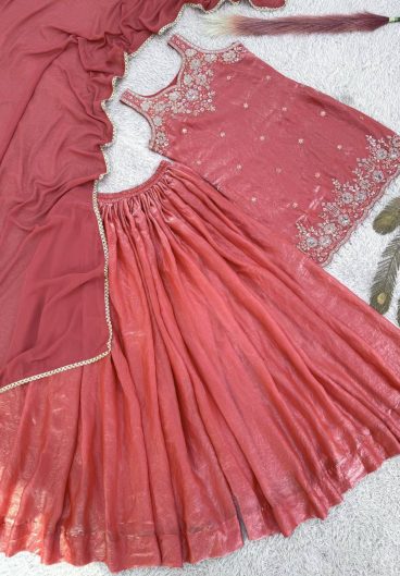 Chinnon Silk Multi Thread Embroidery with Sequence Work Lehenga Top Dupatta Set