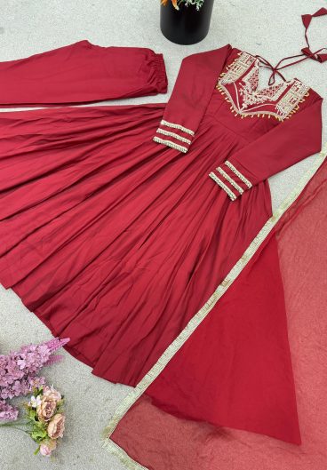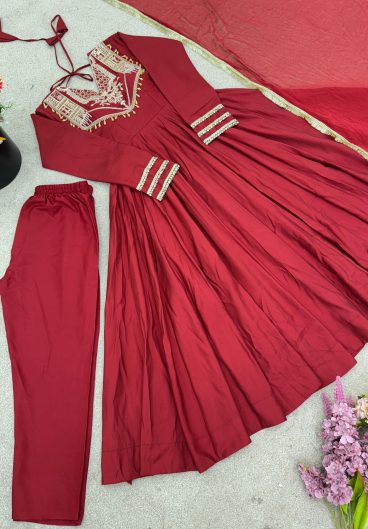 Roman silk with codding work Fully Stitched & Ready To Wear Gown Bottom & Dupatta