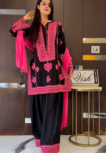 New Designer Natural Crep Silk Top-Bottom And Dupatta Set Fully Stitched