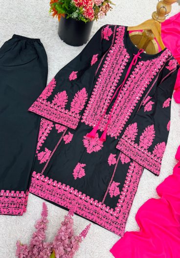 VELVET DESIGNER WEAR KURTA PANT PAIR WITH EMBROIDERY WORK