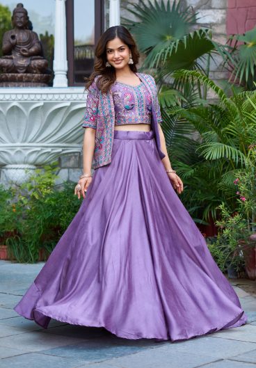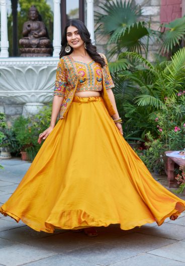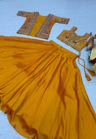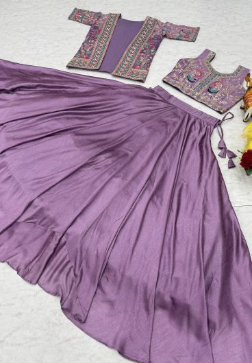Premium Heavy Slub Silk Embellished With Beautiful Thread Embroidery Work Lehenga Choli