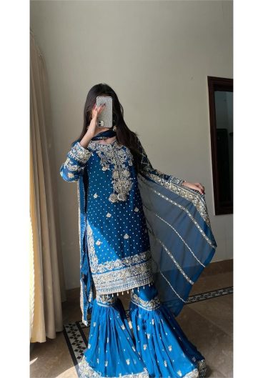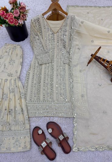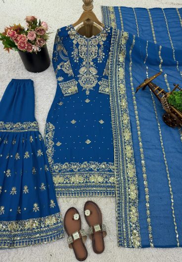 New Designer Pure Heavy Faux Georgette With Heavy Embroidery Sequence Work Top-Bottom And Dupatta Set