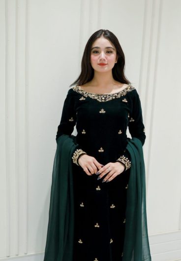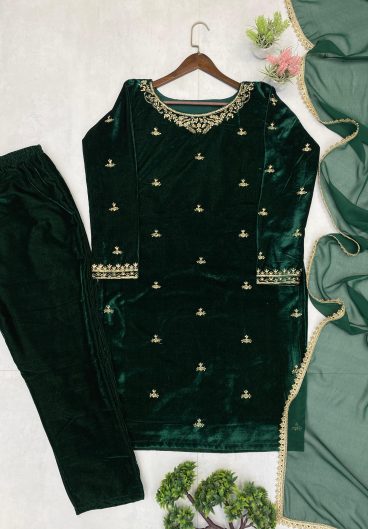 Beautiful Designer Suit On heavy Viscose Velvet fabric with inner and thread with Sequence work and Dupatta