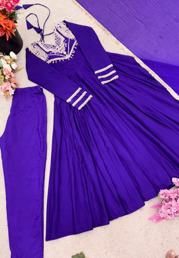 Fully Stitched & Ready To Wear Roman silk with codding work Gown Bottom & Dupatta
