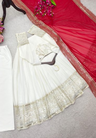 New Design Chinon Silk Gown Pent & dupatta Ready To Party Wear Look