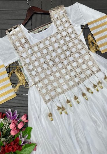 NEW RANGOLI SILK ANARKALI GOWN AND KOTI MIRROR WORK AND FANCY LADKAN SET READY TO WEAR